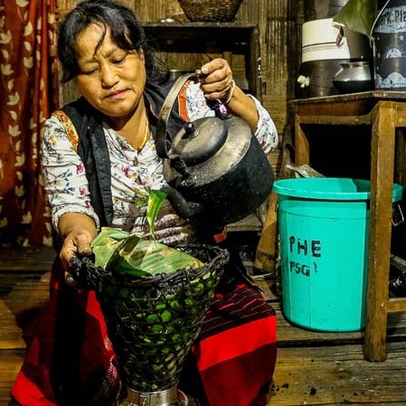 While enjoying my fresh glass of Poka (Rice Beer) inside the stilted house, I noticed how the man of the house was happily indulging in cooking.