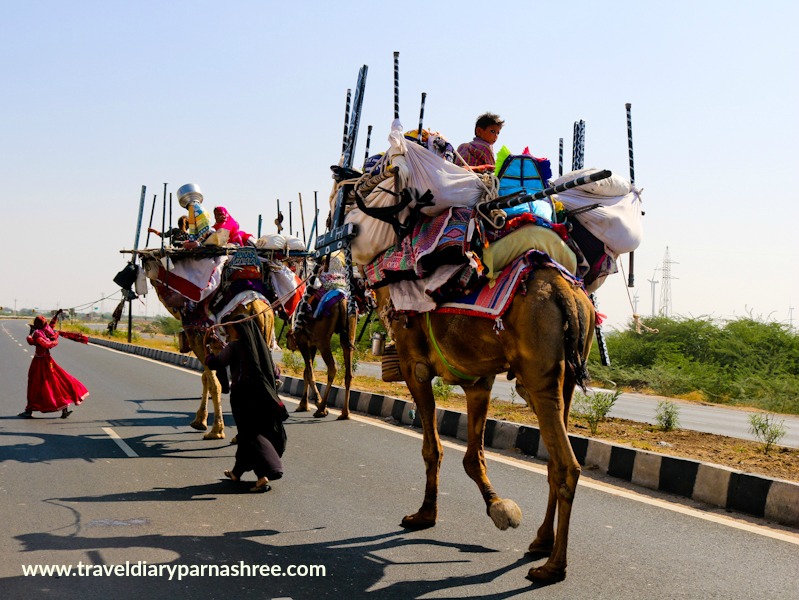 Meeting the Rabaris and visiting their villages in Gujarat just gave me the opportunity to peep into their daily life. The best defining moment was when I came across a migrating Rabari Tribal family on the road in Gujarat, with their children sitting on Camelbacks, slowly and steadily walking towards their next destination. It was a sight that will be etched on my memory forever.