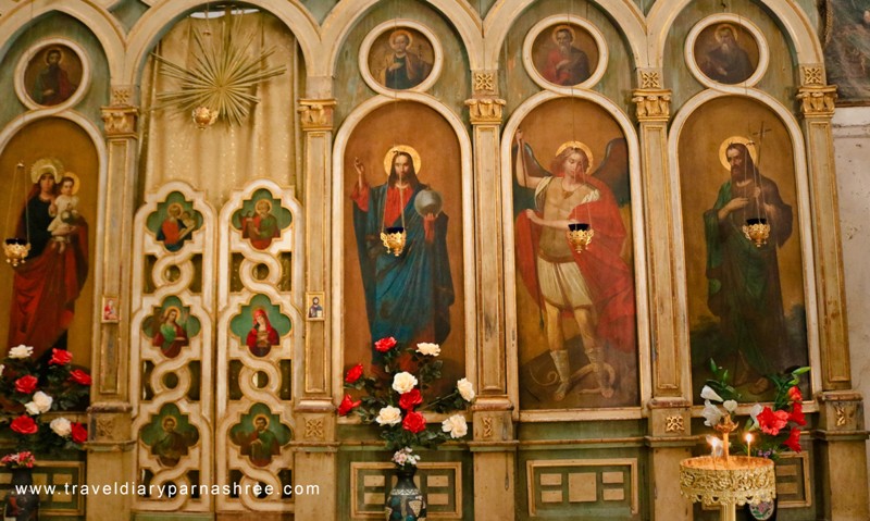 During the Soviet era, religious services were prohibited there. The church has a separate bell tower on the same premises. Tourists are required to cover their lower part with a cloth, available outside the church. Once you enter the church, you have to maintain the decorum and silence inside. It is quite a fascinating sight inside the church.