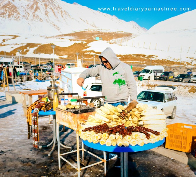 There are small shops selling local Georgian snacks to tourists. If you are traveling during the winter months, don’t forget to cover yourself with layers of woolens, boots, caps, and gloves, since the temperature near the Jvari pass is freezing cold.